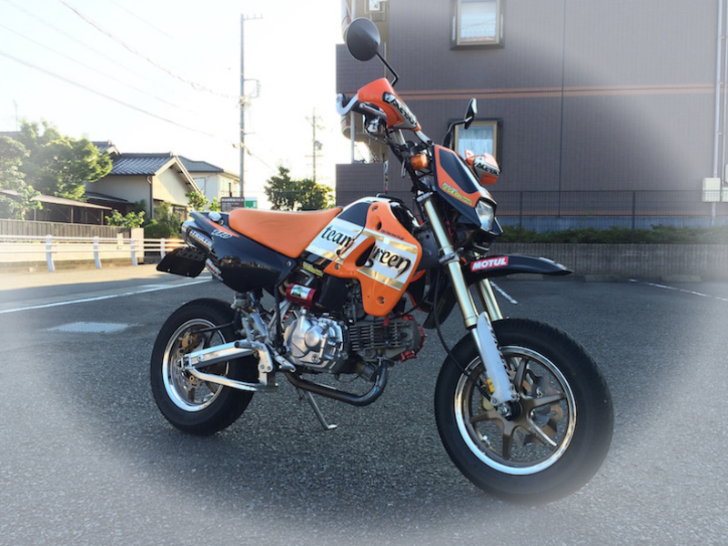 中野ヘルさん KSR110 2型 TEAM KSRに参加してから収集癖に火が付き、ヤフオク調達。KDXの顔だけでなく、KSR110ではない状態に仕上がっている車両。しかも6速ミッションで燃費もいい。